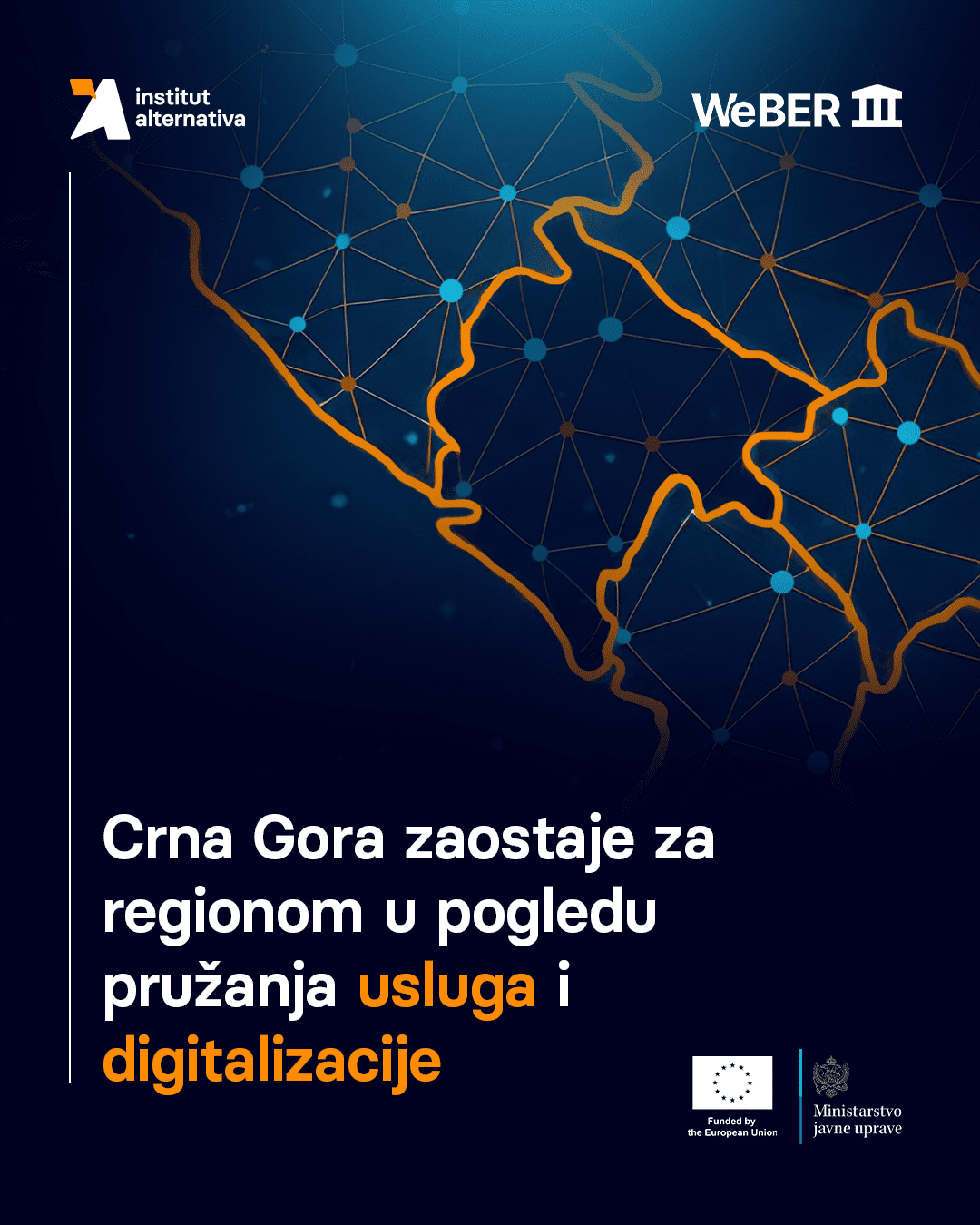 Rezultati regionalnog WeBER praćenja reforme javne uprave u oblasti digitalizacije i pružanja usluga pokazali su da je Crna Gora pretposljednja među šest zemlja regiona (36 poena od mogućih stotinu), sa svega 0.5 bodova više od Bosne i Hercegovine. Čak 37.5% ispitanika u Crnoj Gori smatra da nije lako pristupiti elektronskim uslugama. Ovaj izvještaj je pokazao da…