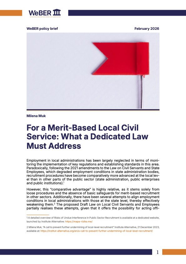 The Draft Law on Local Civil Servants and Employees was presented in October 2025, followed by a public consultation. Institute Alternative participated in the consultation. Below, we present an overview of our key recommendations and arguments as to why the proposed Draft Law not deliver the expected improvements unless certain procedures are more precisely defined and safeguards introduced to prevent abuse.